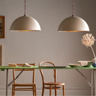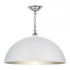The understated Ealing has been hand sprayed in Powder Grey with rolled edge detailing, complete with and Brushed Chrome inner. Includes a coordinating chain, ceiling cup and braided cable which is height adjustable at point of installation.