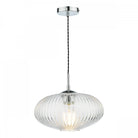Edmond 1 Light Single Pendant Polished Chrome Ribbed Glass