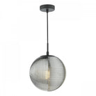 The Evander Single Pendant Smoked Ribbed Glass from dar lighting offers a stylish and contemporary lighting solution for your home. The Evander single pendant features a matt black frame with a stunning smoked glass shade which has a linear ribbing on one side and a circular ribbing on the other. The Evander single pendant features a height adjustable braided black cable allowing you to adjust the height to your requirements. The Evander single pendant takes a single E27 (ES) bulb (not supplied), We recommend using LED filament lamps from our range of LED bulbs.