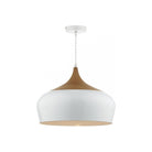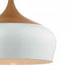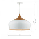 The GAUCHO 1lt Large Pendant features a white high-gloss ceiling plate and matching metal shade with feature wood effect cap detail.