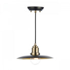The two-tone retro styled HANNOVER 1lt Pendant has a black and antique brass ceiling plate and shade.