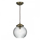 A classic single pendant with simple metal detailing in antique brass and a ribbed glass shade that gives a nod to Edwardian domesticity. Supplied with matching ceiling cup and brown braided cable.