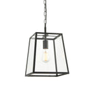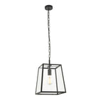 Inspired by box lanterns, this ceiling pendant is the perfect complement for today's relaxed classic interiors. Finished in matt black paint and suspended from height adjustable chain with black fabric flex. Pair with vintage style filament LED lamps that are perfectly framed by the subtle tapered metalwork and large clear glass panels.