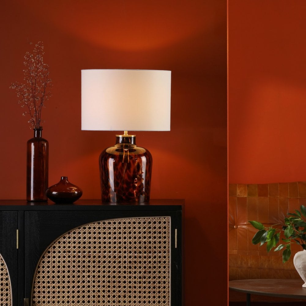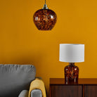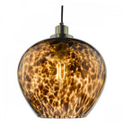 The LEANDRA Pendant Tortoiseshell Glass and Antique Brass is a beautiful hand-blown tortoiseshell glass pendant with antique brass accents. The Leandra pendant light features a hand-blown glass confetti insert with an amber glow, complemented by black braided cable. The Leandra pendant light features a height adjustable braided cable allowing you to adjust the height to your preference. Leandra features a modern take on a vintage look, with its reto-inspired antique brass metalwork and hand-blown glass insert. The Leandra pendant light is suitable for an entryway, dining room or anywhere a little style is needed.