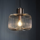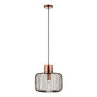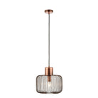 The Nicola metal caged shade finished in an antique copper effect plate puts a modern twist on vintage and industrial style lighting. Works well with a filament bulb. Height is adjustable at time of fitting and suitable for use with LED lamps.