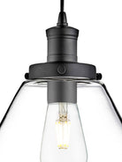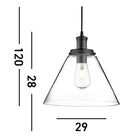 The clear glass shade has a stylish matt black finish top leading up to a cable suspension, which is fully adjustable for different ceiling heights.