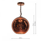 SPECKLE is a gorgeous glass globe of dappled, speckled copper that when illuminated gives off a warm glowing light that adds oodles of atmosphere to any interior. Matching ceiling plate with 1 metre of chain and on a bright copper base and finished with luxury black braided cable.
