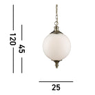 Antique Brass Pendant Light with Opal Glass Ball Shade is very traditional and incredibly beautiful. The spherical opal glass shade is topped and tailed with fittings finished in antique brass, and is attached to the ceiling by a chain suspension. The glass shade creates an elegant ball of light when it is turned on.