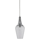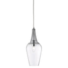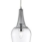 Chrome Trim and Clear Glass Shade is classic and stylish. The clear glass shade has an elegant upside down pear shape, with chrome finish whisk style detailing at the top and a grey ceiling suspension which can be adjusted for different ceiling heights. It produces a subtle source of light and a relaxed ambience.