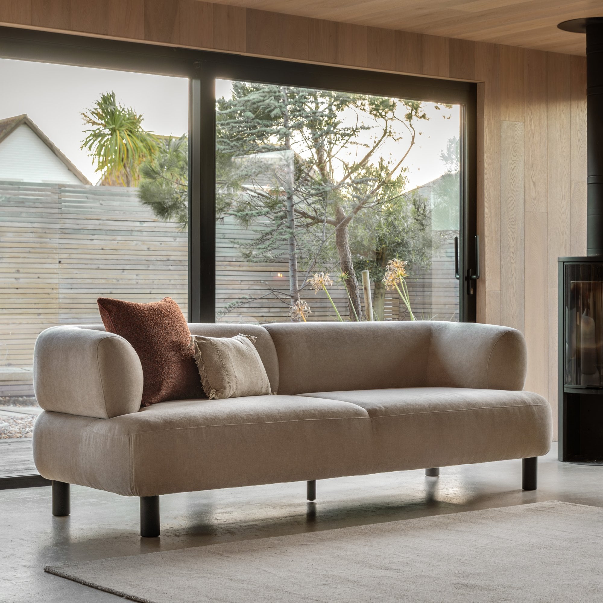 Perfect for getting cosy this well cushioned 3 seater sofa will become the feature of your living space. With a modern design, smooth formed back and bold dark wood legs this stand out sofa is perfect for getting comfy. Also available in grey.