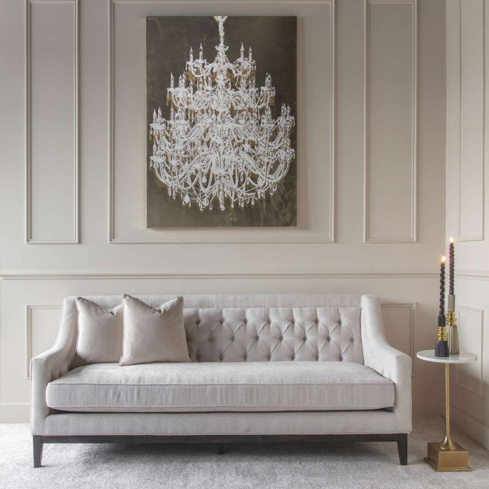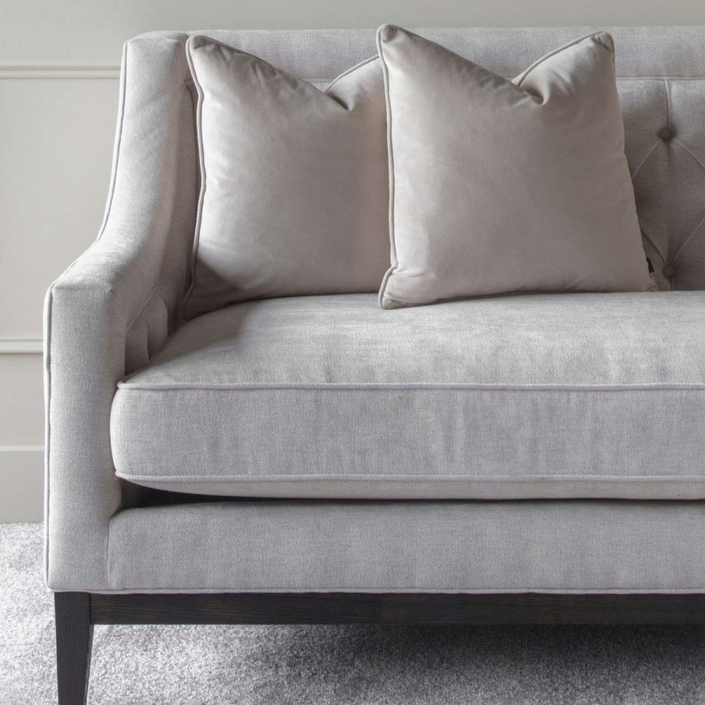 Upholstered in a beautiful woven fabric and available in two colours, this three seater Sofa is made in soft Ivory and benefits from deep buttoning and piped detailing. It has a generous deep seat cushion and sits upon a solid deep brown wooden frame. It measures 200cm in length and requires simple self assembly.