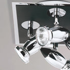 The Comet black 4 light spotlight with chrome trim is modern, stylish and lights any bedroom, living room, dining room or kitchen perfectly. The sleek black and chrome finish square ceiling plate is very contemporary and the polished chrome finish looks stunning, and the four spotlights can be adjusted and swivelled around the square fitting, into practically any position. **THIS PRODUCT ACCEPTS A MAX 7W LED or 50w HALOGEN GU10**