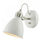 The FREDERICK is a neat directional wall lamp shown in soft white with brushed nickel metalwork and matching toggle switch. Teamed with the floor or table lamp, this range adds an instant style fix to any interior.
