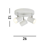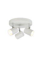 This fashionable Rollo 3 light head spot plate provides a warm directional source of light. The beams of light are attached by chrome to a smooth white base. Use to compliment modern decor in a kitchen or dining room.
