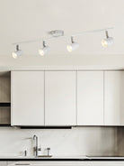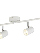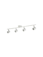 Provide a contemporary feel to your home with this simple yet stylish Rollo 4 light head split in white and chrome. The cylindrical lights are attached to a 2 part slim white bar that can be rotated to suit your preference. A spread of light will warmly brighten your living room, kitchen or any room of your choice.