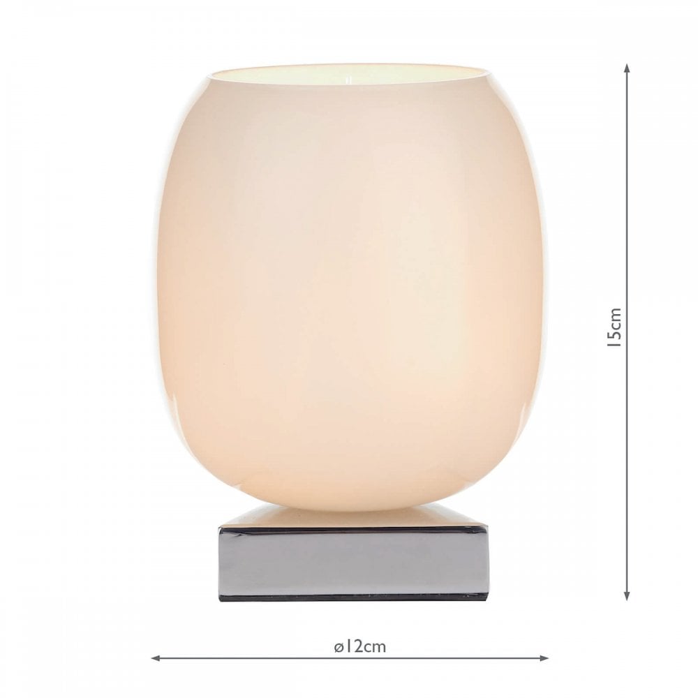 The Dino Table Lamp has a polished chrome finish and a white glass shade. It's 3 stage touch operated, which makes this a perfect choice as a bedside light.