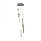 The Halo spiral pendant features chunky / heavy sold faceted glass rods with inner bubbles. These bubbles are illuminated by the LED light (Available in Warm White or Cool White) and finished with a highly mirrored polished chrome base and pendant detail.