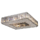 This glamorous Kylie square flush is perfect for new build homes with lower ceilings. Also available in a small 45cm size. Featuring a polished chrome detail and combined with large rectangular crystals and a skirt of cut crystal buttons. A generous amount of faced crystal creates a refined sparkle from every angle. Linea in style for a more modern interior.