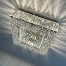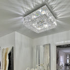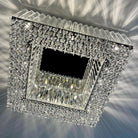 This glamorous Kylie square flush is perfect for new build homes with lower ceilings. Also available in a larger 60cm size. Featuring a polished chrome detail and combined with large rectangular crystals and a skirt of cut crystal buttons. A generous amount of faced crystal creates a refined sparkle from every angle. Linea in style for a more modern interior.