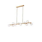 This 10 light pendant finished in Gold has a retro inspired look with the glass globe shades. Suspended from cables which are height adjustable at the point of installation.