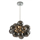 This Lyon 3 Light Polished Chrome & Smoked Glass Pendant Ceiling Light is a glamorous addition to the Lyon collection. Also available in a larger size and a square shape too. Featuring a polished chrome detail and combined with glass baubles. Available in smoked, iridescent or cognac glass