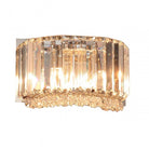 This glamorous Marcella wall light is finished in a polished chrome detail and combined with large rectangular crystals and a skirt of cut crystal buttons. With 2 x bulbs for a super sparkle finish this is a glamorous wall light to complete the Marcella collection. A generous amount of faced crystal creates a refined sparkle from every angle.