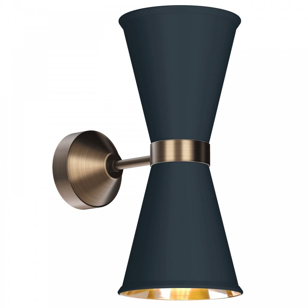 Hyde 2 Light Wall Light Antique Brass & Smoke Blue