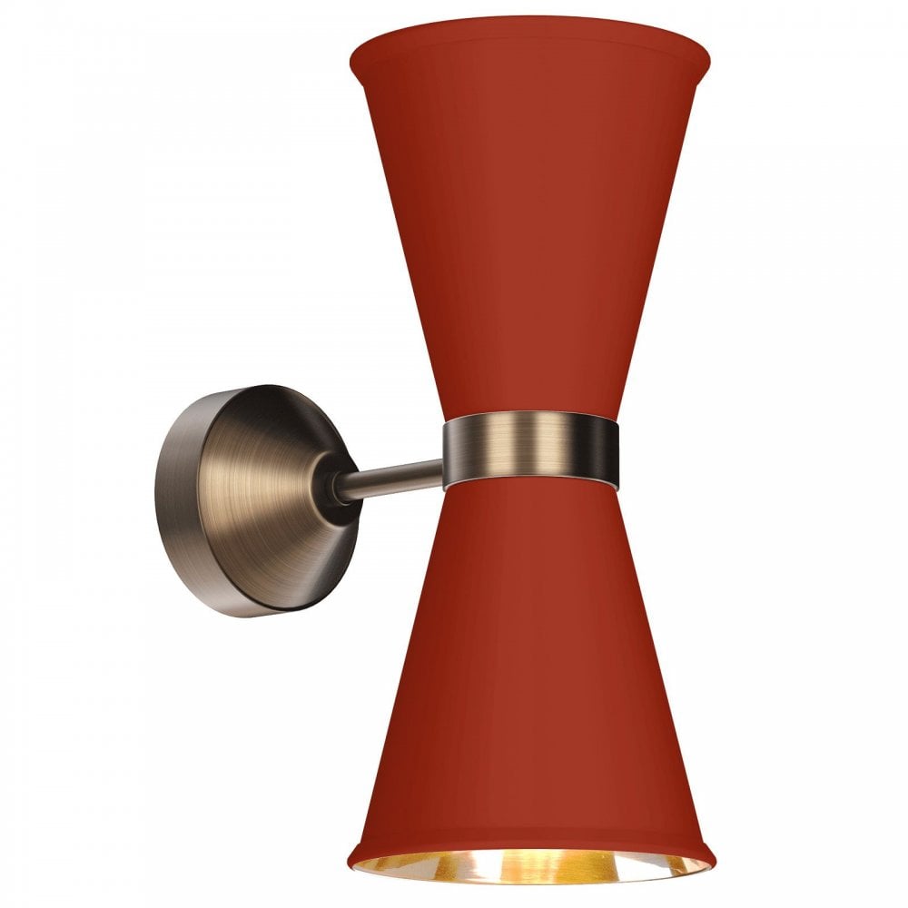 Hyde 2 Light Wall Light Antique Brass & Strawberry