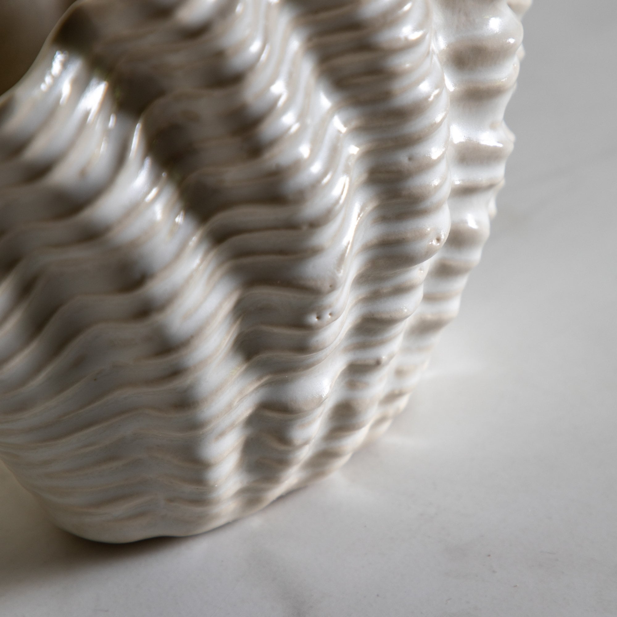 Bring the seaside to your room with this beautiful shell shaped vase. In a white reactive glaze and fluted seashell details, this is the perfect way to display your flowers.