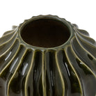 Inspired by a beautiful coral reef, this stunning vase can't help but grab your attention. The undulating curved ribs are highlighted by a warm olive green glaze, creating an organic and attention grabbing piece.