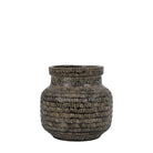 Handmade with a textured design scratched into the rich black ceramic glaze, this wide vase has intriguing depth, bringing a modern handmade style to your home. Looks great paired with the coordinating pieces in the collection.