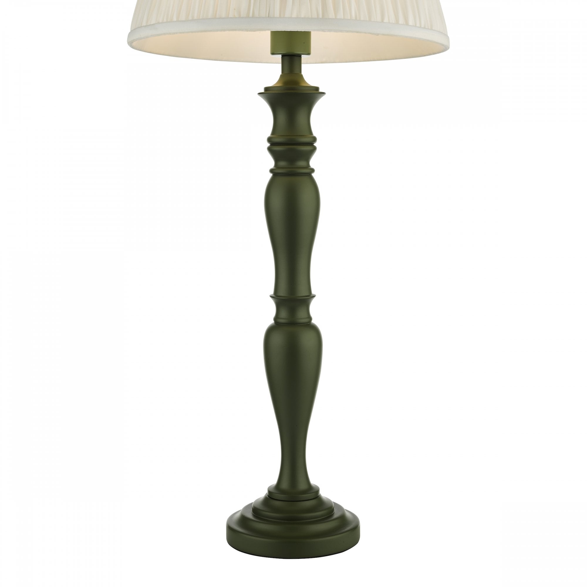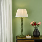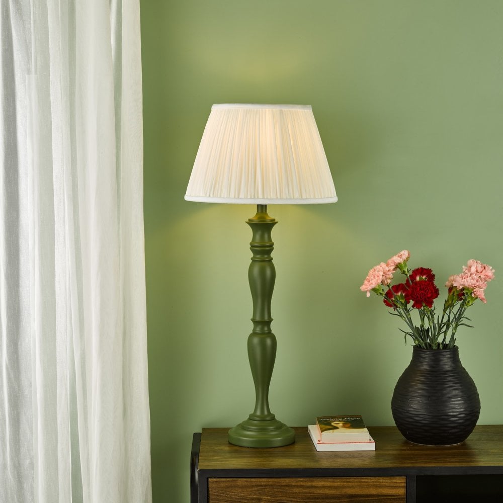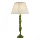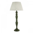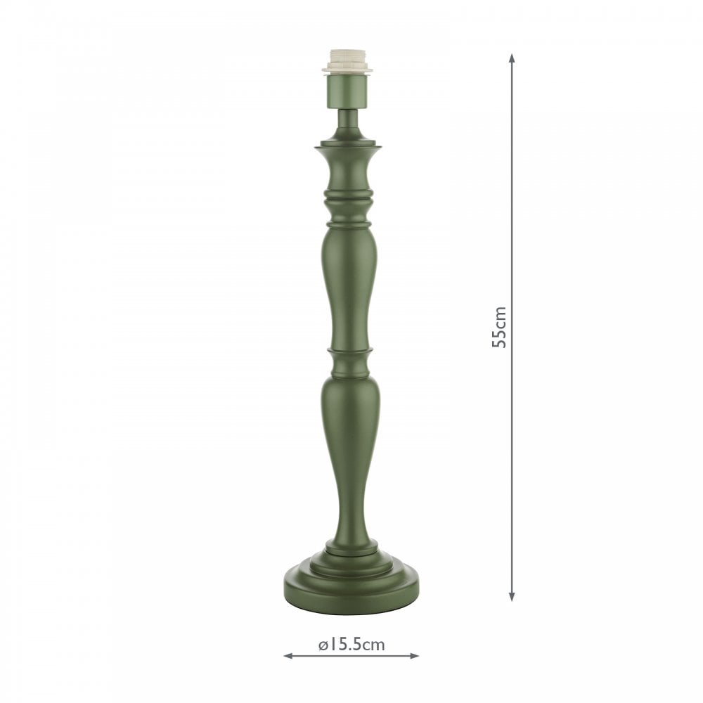 The grandly scaled Caycee Table Lamp has a spindle design constructed in solid wood, finished in a rich green colour.
