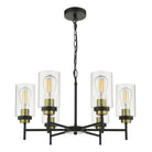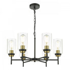 The Abel 6 light pendant is a contemporary blend of matt black metal work with satin brass accents. Featuring slender arms and clear glass cylindrical shades, it works great with our selection of Vintage Lamps. The Abel 6 light pendant makes a perfect statement ceiling light for any living or dining room.