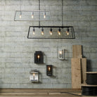 The ACADEMY 5lt bar pendant has a matt black ceiling plate and frame with clear glass panels. Perfect for use over kitchen islands or dining room tables and looks especially good when used in conjunction with vintage style lamps, available to buy separately.