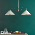 Part of the English Heritage lighting collection, inspired by Great British houses and gardens. For this functional two light bar pendant, our designers took cues from the utilitarian lighting in Audley End’s working Victorian kitchen. Featuring putty-coloured gloss shades and dark bronze metalwork, incorporating faux gas taps for an authentic period look.