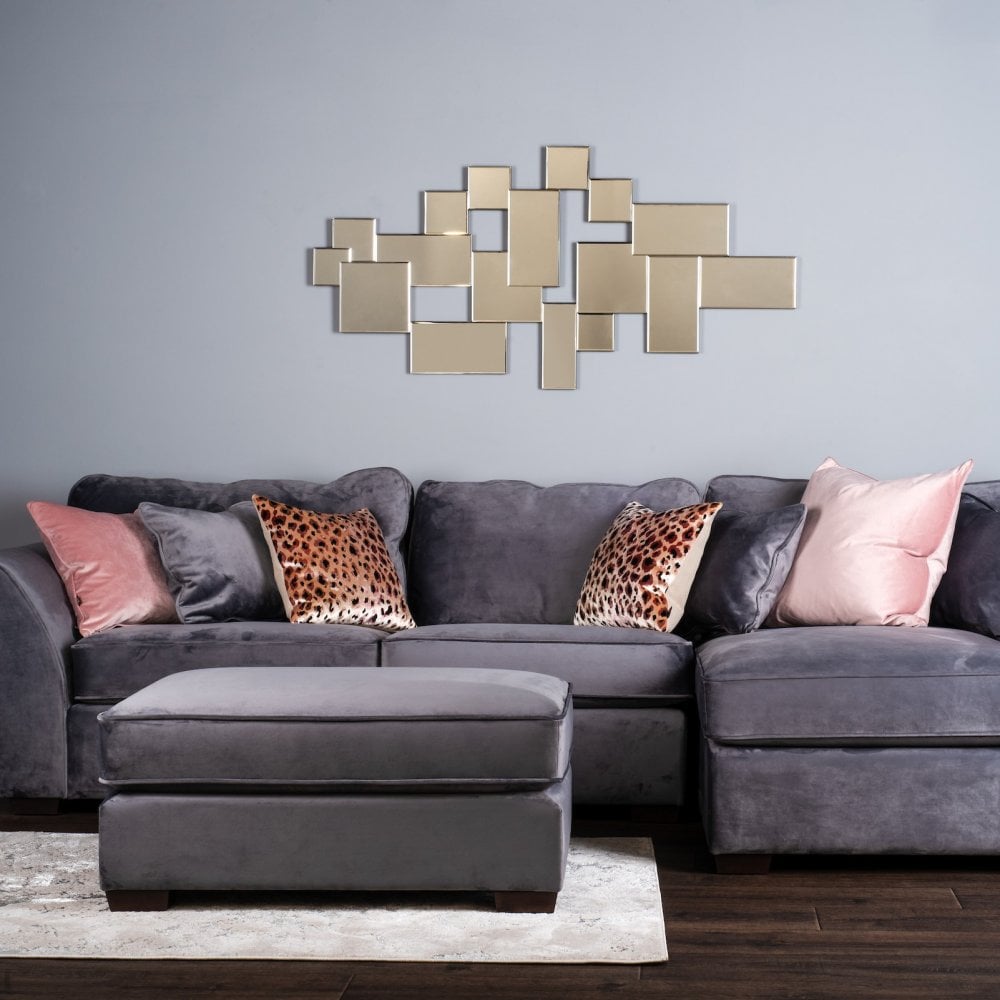 Overlapped and adjoined assortment of edged mirrored shapes create a charming centrepiece.