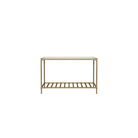 Exhibiting a classic antiqued brass effect, the Laura Ashley Brynmill Console Table combines a sturdy steel base with toughened glass. The corner joints feature decorative fillets which also add extra strength; perfect for supporting the substantial, thick glass top. A lower magazine shelf is also a convenient byproduct of additional strengthening ribs.