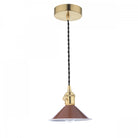This all-metal version has a vintage-look cone shade in an earth burnt red gloss finish and white inner, complemented by a sophisticated brass finish ceiling rose and machined lamp holder. The Hadano single pendants work great in the bedroom over a side table, in an office corner, in a group over a dining table. They also make for great kitchen island lighting. If displaying in a group you can also play with mixing the different shade combinations and heights.