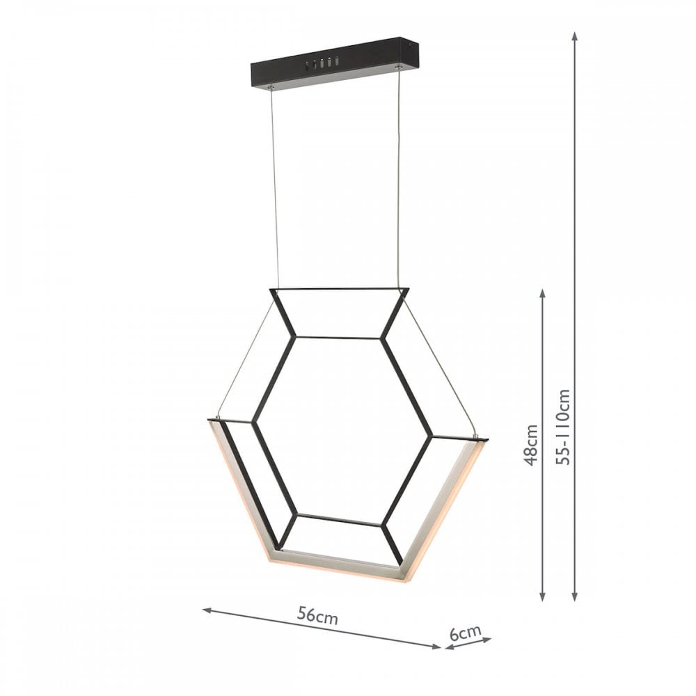Our exceptional Hex 5lt LED bar pendant features 5 hexagonal pendants with a lovely satin black frame and polished chrome base.