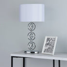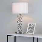 The Innsbruck is an elegant table lamp in polished chrome with interlocking circular rings. Finished with a luxury faux silk lined shade in ivory.
