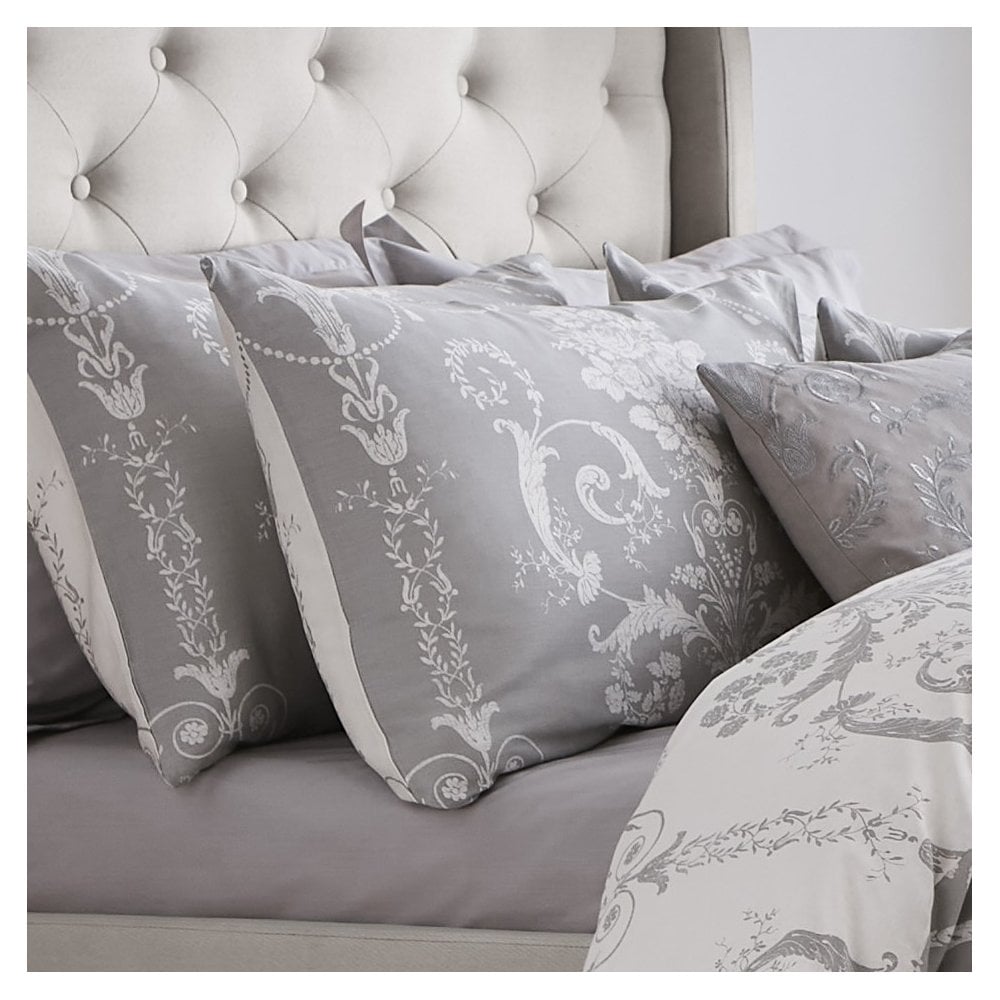 Elegant chandeliers and romantic rose bouquets decorate this luxurious 200 thread count pure cotton sateen pillowcase pair. A Laura Ashley classic, the timeless Josette design combines simplicity with natural glamour in a new, contemporary steel grey shade.
