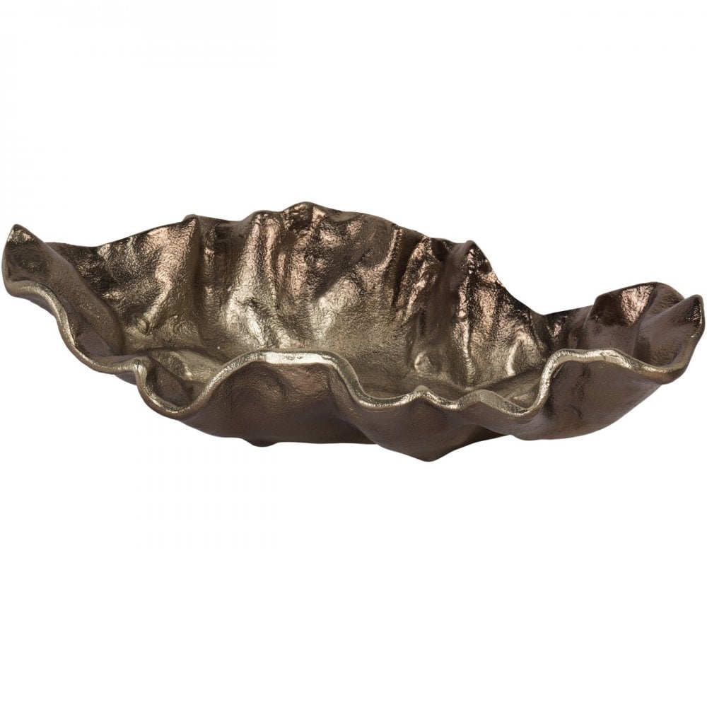 The Lowe Cast Aluminium Bowl Large width 43cm is a striking home decor bowl crafted from antique brass cast aluminium. Its design features a natural, organic shape, seamlessly formed to create an elegant and sophisticated look. Each bowl is meticulously handcrafted by skilled artisans, ensuring that no two bowls are alike. The Lowe Cast Aluminium Bowl is available in two sizes. This range is for decorative use only, it is not food-safe or water-safe.