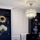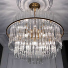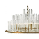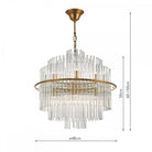 The Lukas 13 light Pendant LUK1735 consists of hundreds of tiered glass rods appearing to give a floating illusion inside an antique gold band. This fitting is height adjustable and would make the perfect statement piece for any living area.