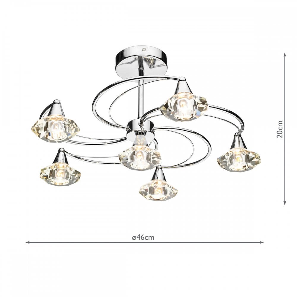 LUTHER 6lt Semi Flush fitting in polished chrome with faceted crystal glass shades.