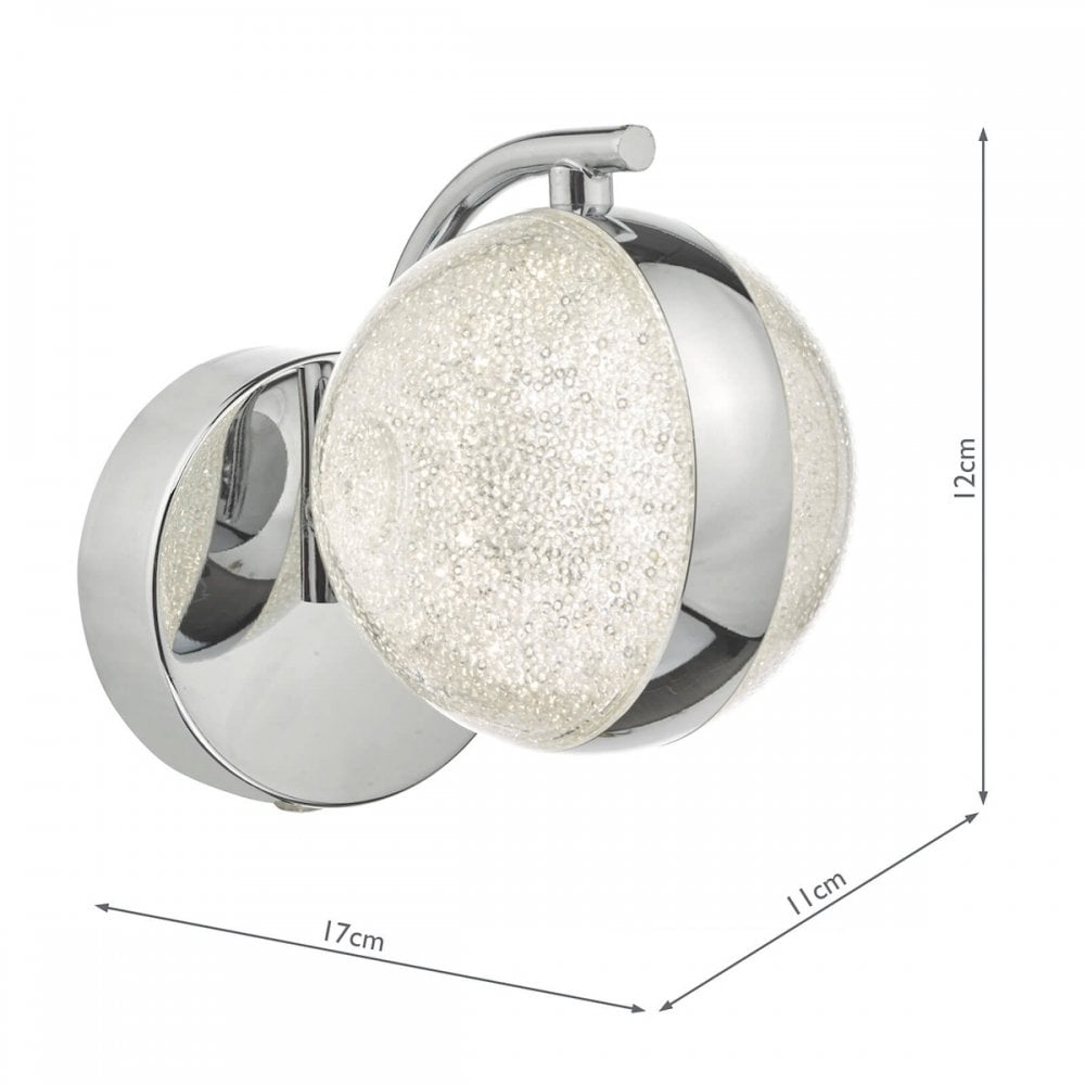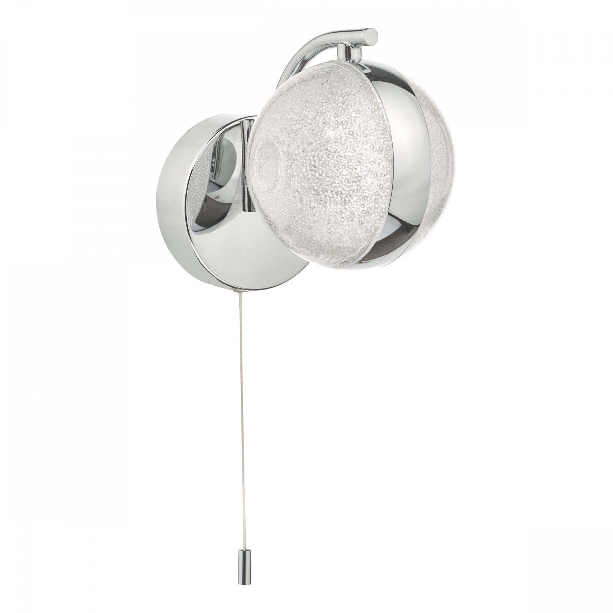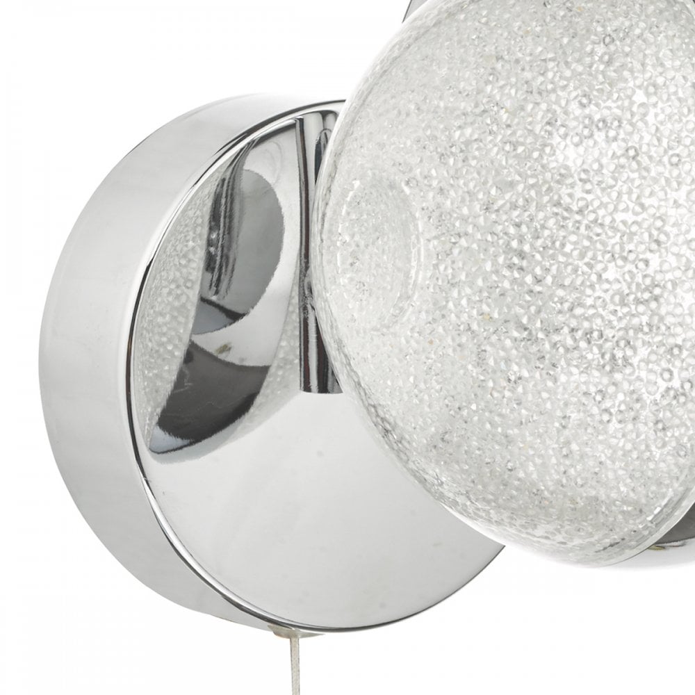The NYMA LED wall light adds a beautiful ambience to any space; perfect for use by itself or in multiples to add to the aesthetic. Featuring a curved arm in polished chrome that suspends a decorative acrylic orb shade.