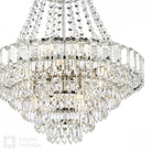 Using a combination of aesthetically stepped tiers and a mixture of coffin, teardrop, and bead-shaped faceted crystals; This traditional hanging chandelier adds a touch of opulence to any home, no matter what the style.