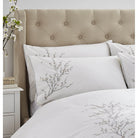 Pussy Willow Sprig Embroidered Dove Grey Pillowcase Pair