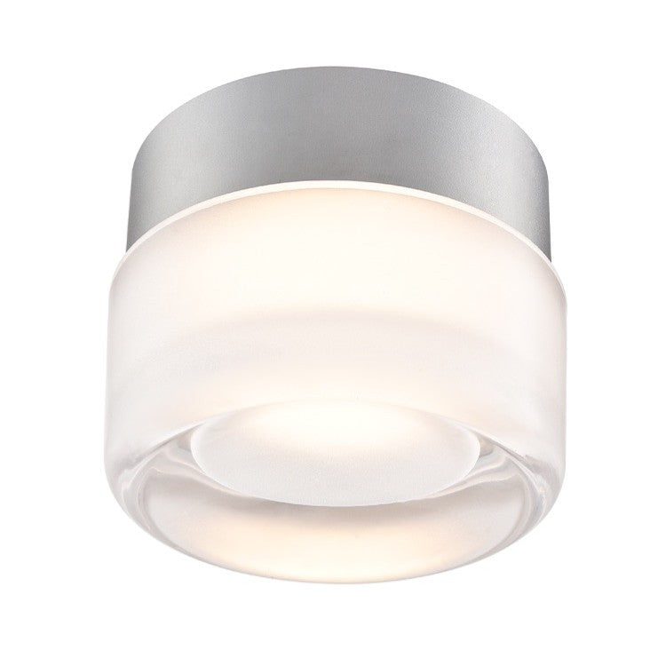 Painted grey finish fitting with opal diffuser encased in clear glass. Can be used as a ceiling flush or wall light.