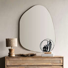 Elegantly framed mirror surrounded by bronze metal hand finished with lighter highlights. Organic shape measuring 69 x 86cm. Three sizes of Sabina mirror available.