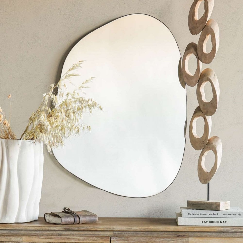 Elegantly framed mirror surrounded by bronze metal hand finished with lighter highlights. Organic shape measuring 60 x 80cm. Three sizes of Sabina mirror available.